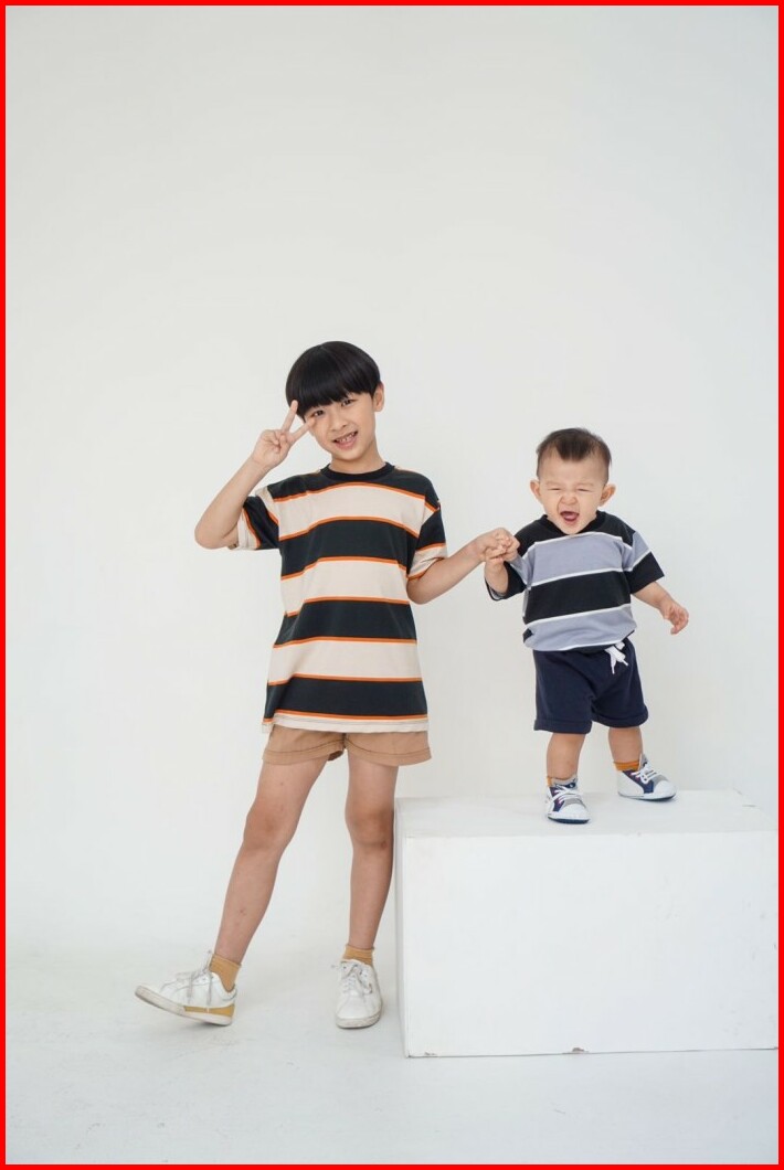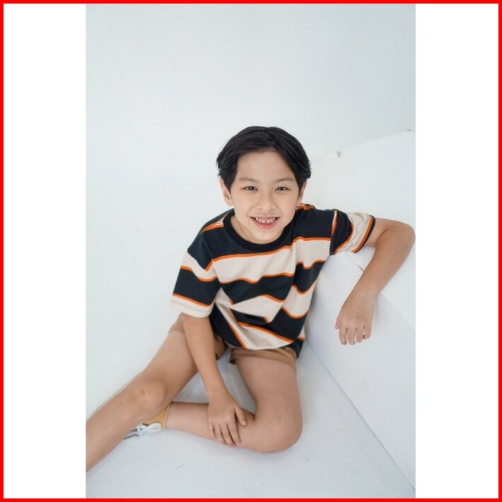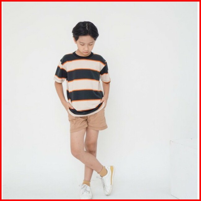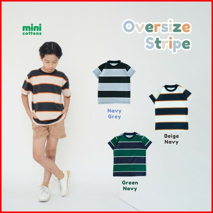 Mini Cottons Kaos Oversize Salur Anak Laki Laki Strip Tshirt 1-12 Thn