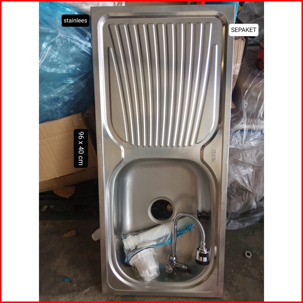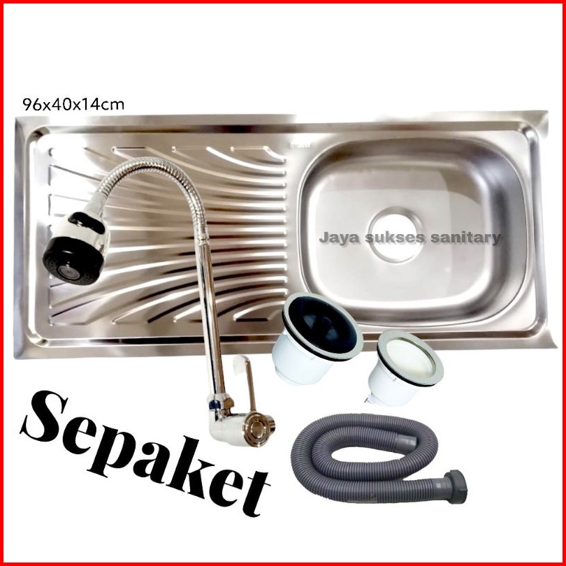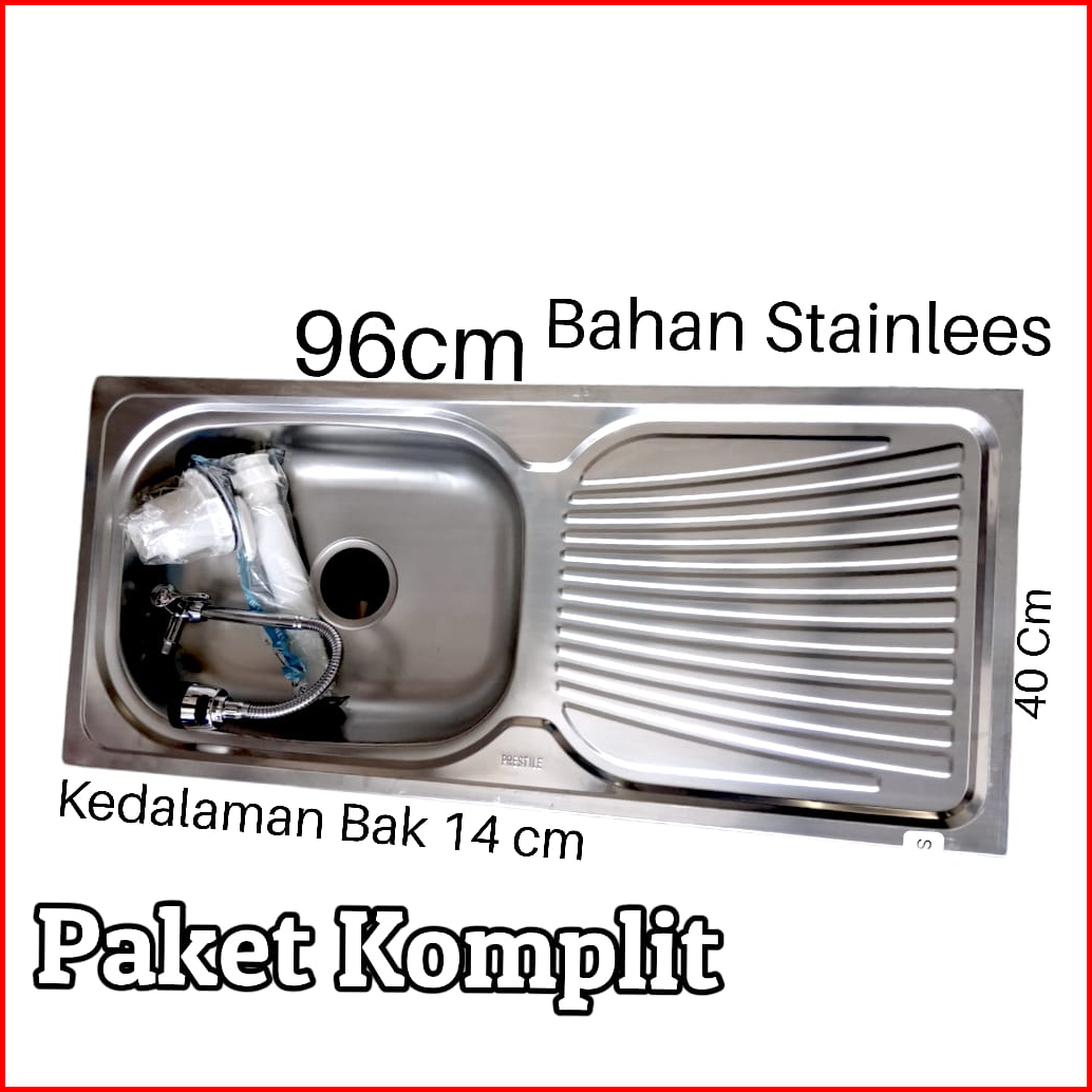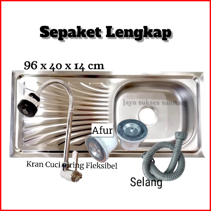 Bak Cuci Piring Wastafel Cuci Piring Stainless 96x43 Cm Free Selang Afur Kran Stainless