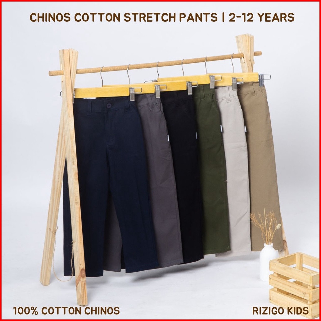 Rizigo Kids Celana Chinos Cotton Stretch Anak Laki Laki Perempuan 2-12 Tahun