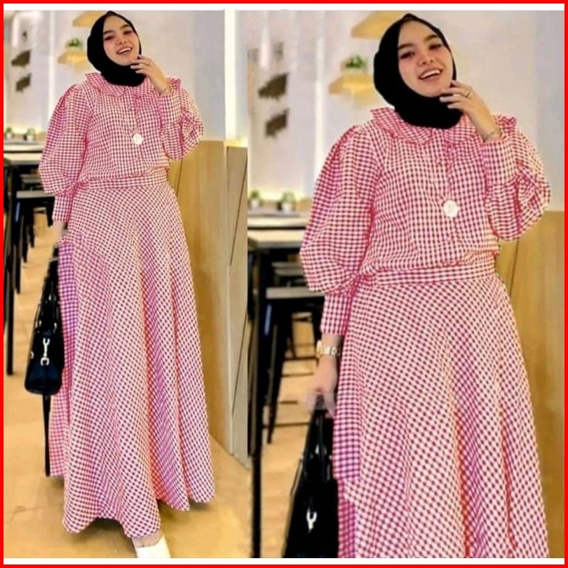 Set Rok Kekinian Cantika Stelan Rok Mayung Kotak-kotak Semi Tunik Busui