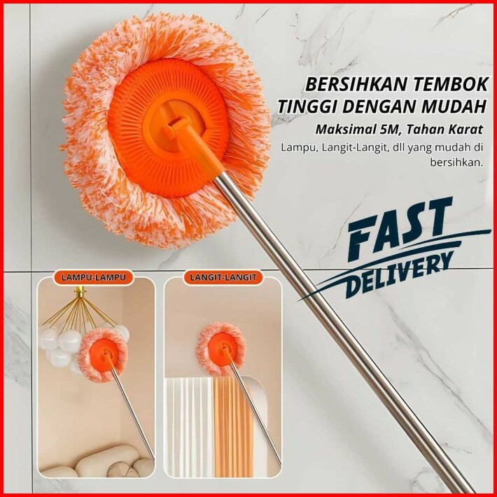 Terlaris Alat Sapu Plafon Bunga Matahari 1 Set Pembersih Rumah Pel Dinding Multi Fungsi Pel Lantai 1.4m-5m