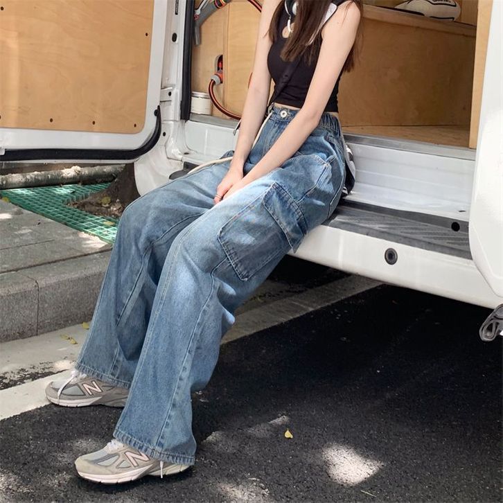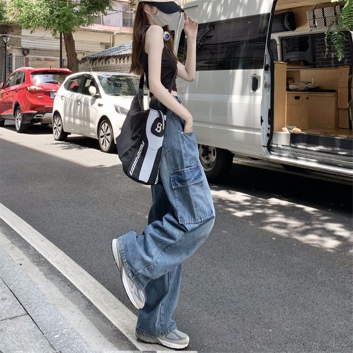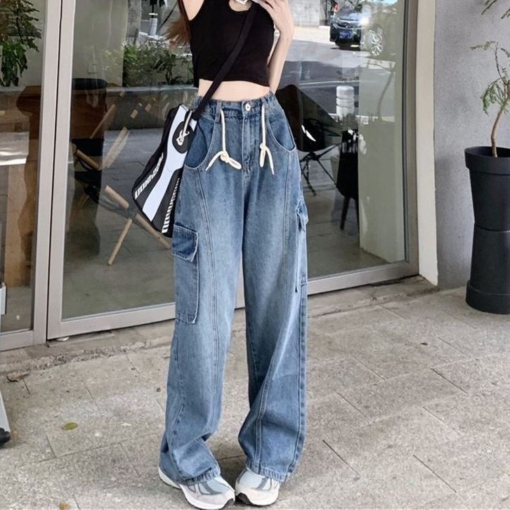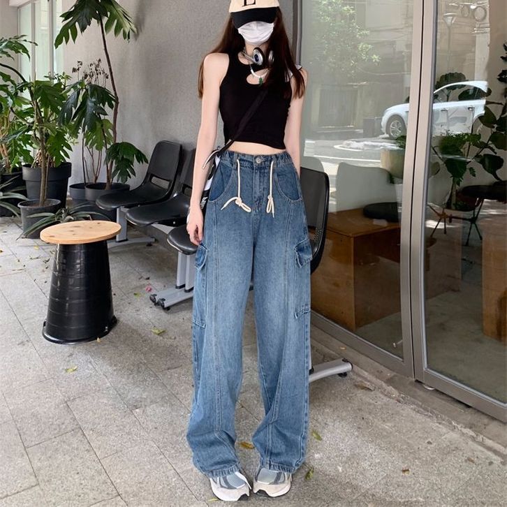 Celana Kerja Jeans Wanita Celana Jeans Hw Kekinian Celana Denim Panjang Dengan Tali Serut Dan Banyak Kantong
