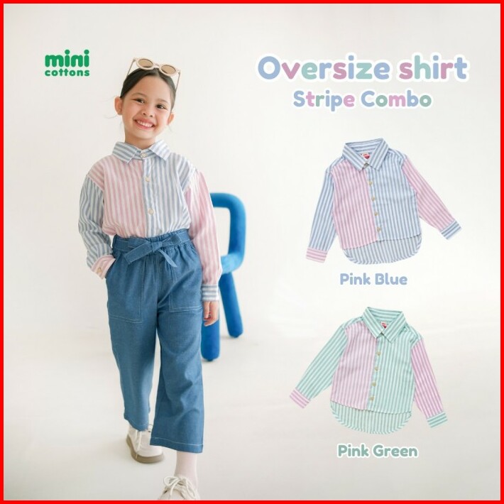 Minicottons Kemeja Oversize Motif Salur Striped Combo Anak Perempuan 1-12 Tahun