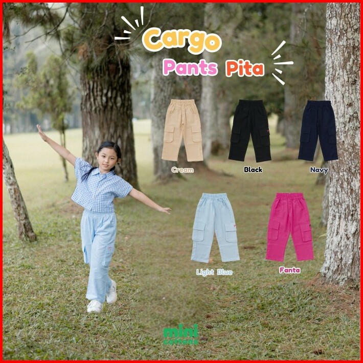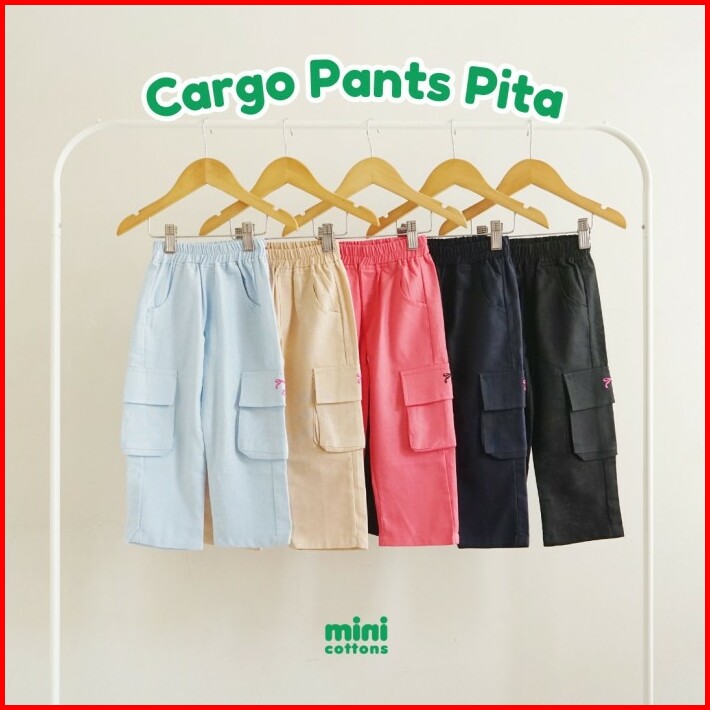 Minicottons Linen Cargo Pants Celana Kargo Anak Perempuan 1-12 Tahun