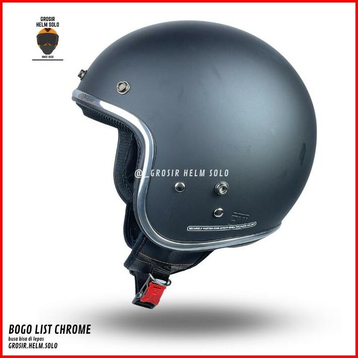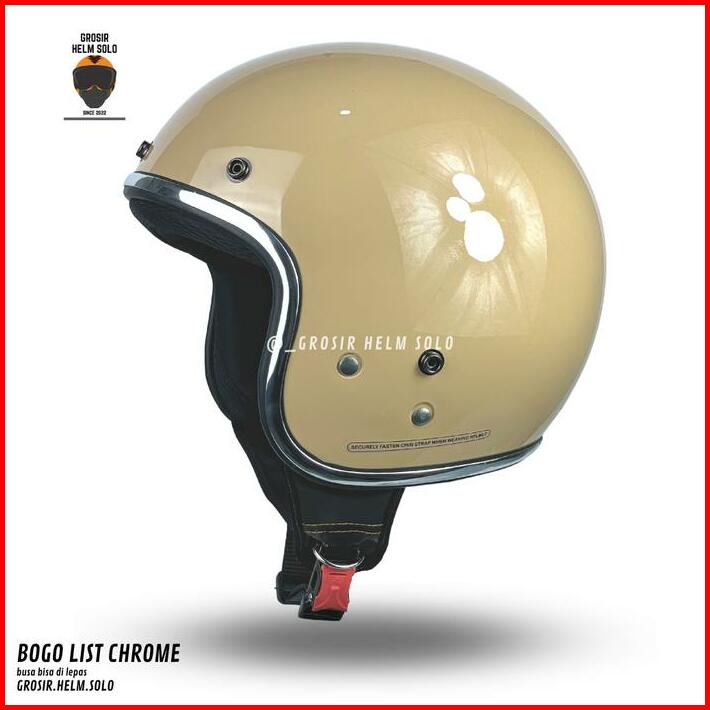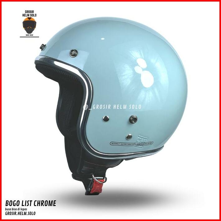 Helm Bogo Dewasa List Chrome Retro Warna Solid Terbaru Sni