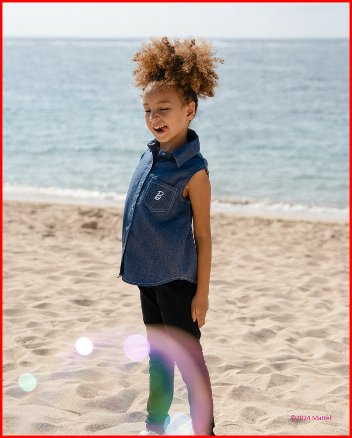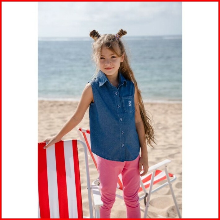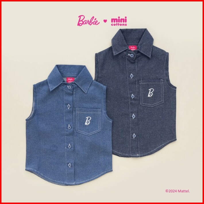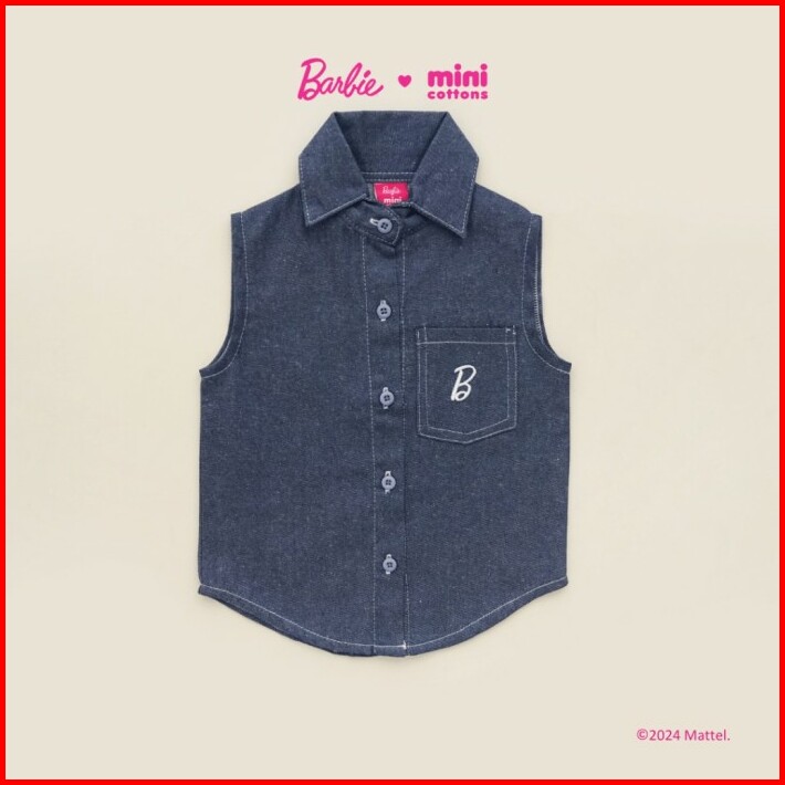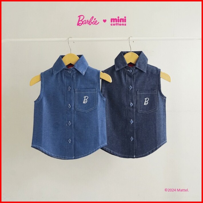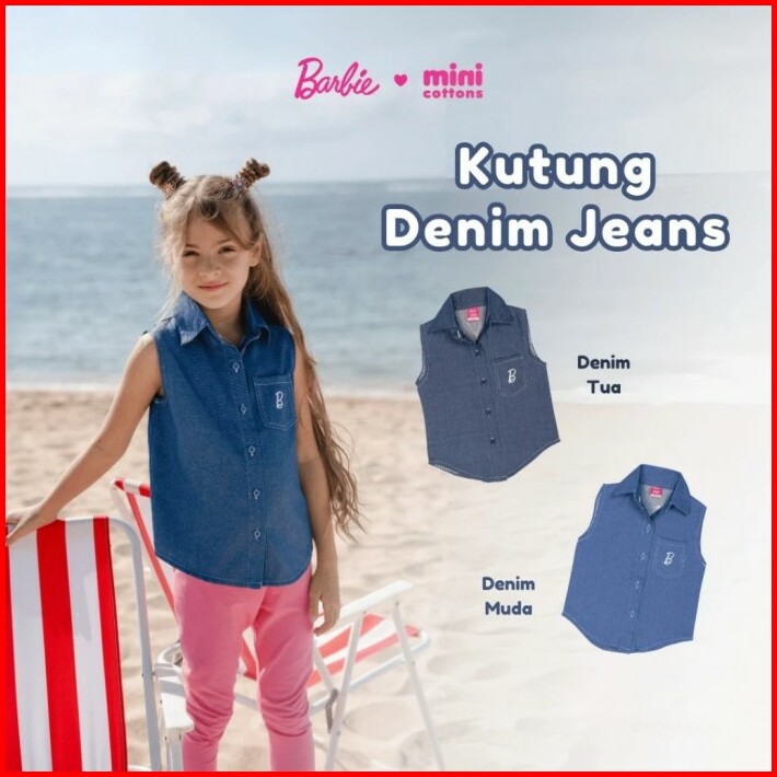 Barbie X Minicottons Atasan Kemeja Kutung Denim Jeans Anak Perempuan 2-12 Tahun