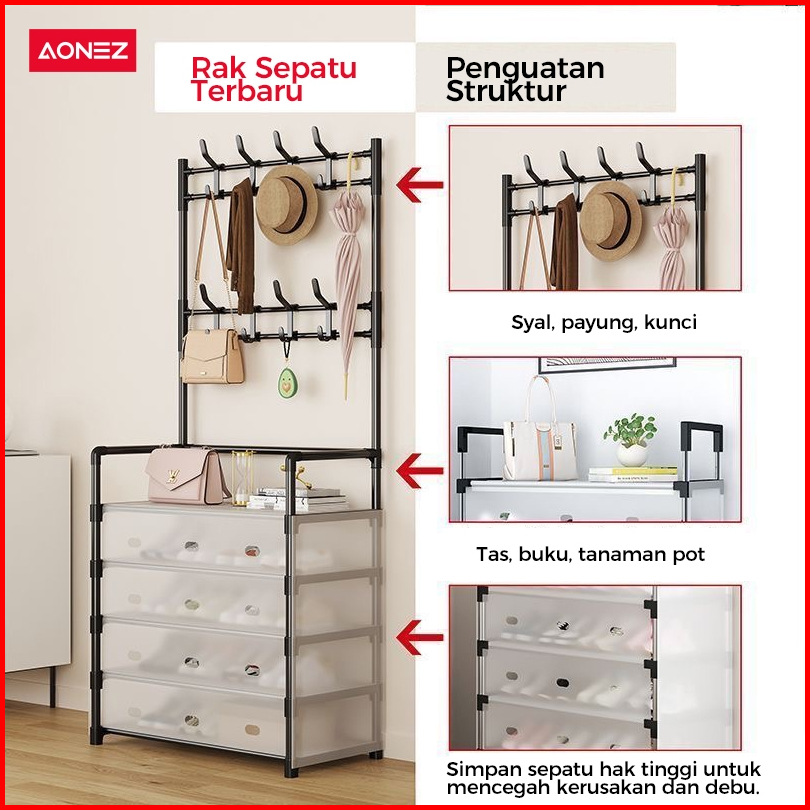 Aonez Rak Sepatu Tertutup Anti Debu Serbaguna 5 6 Lapis Rak Sepatu 2 In 1 Gantungan Tas Pakaian Rak Penyimpanan Dengan P
