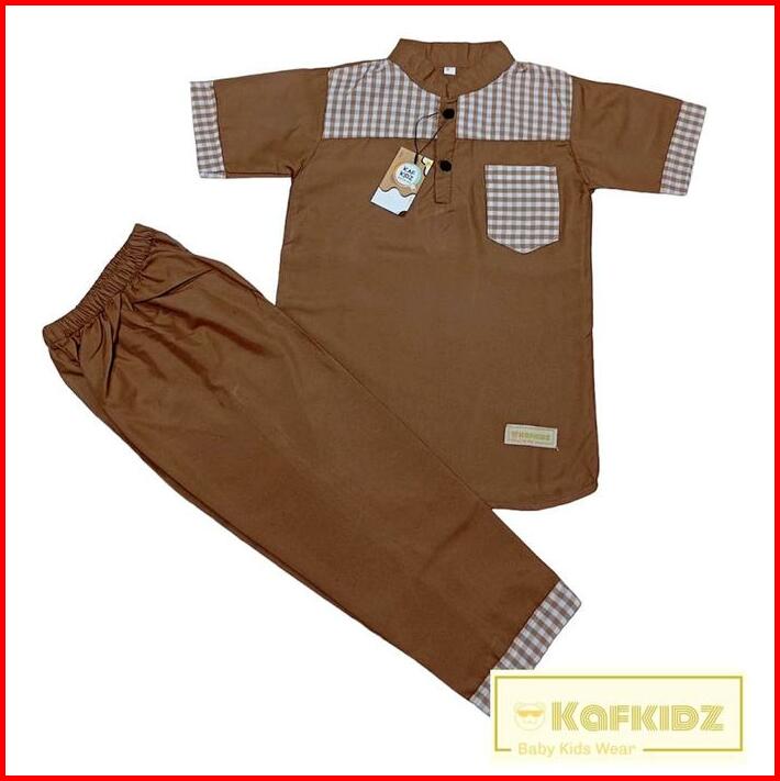 Aryan Setelan Koko Anak Baju Muslim Anak Laki Laki Baju Koko Anak Laki Kotak Motif Nyaman Katun Peci Kurta