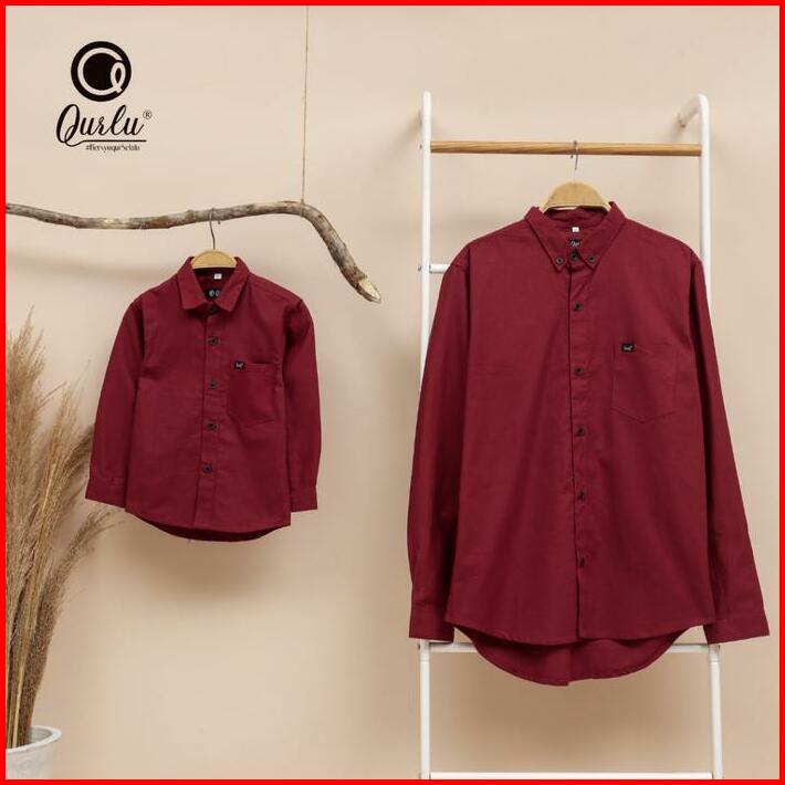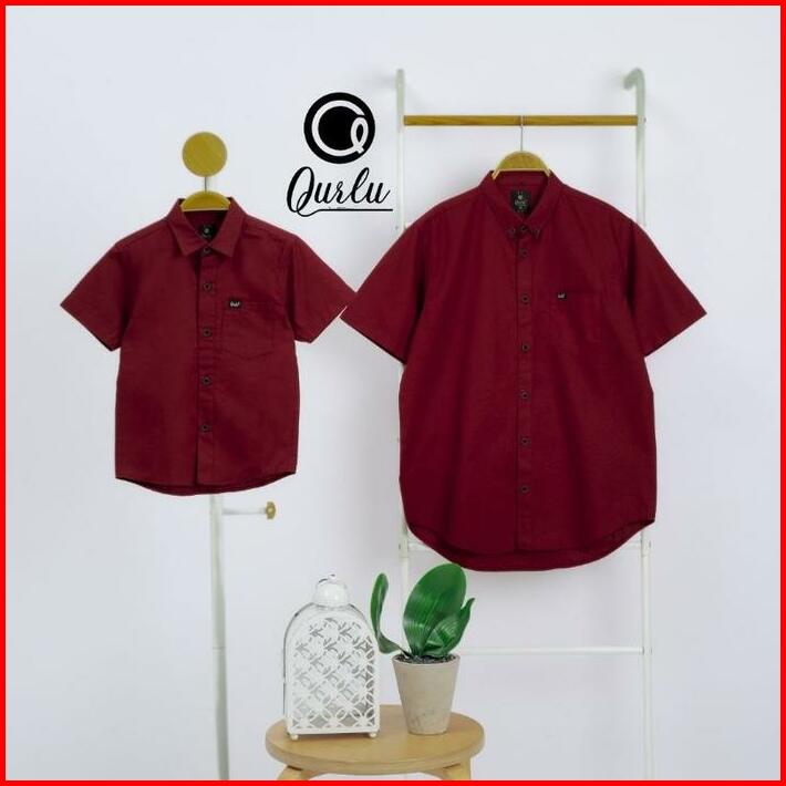 Kemeja Kerah Formal Merah Tua Dewasa Anak Kemeja Couple Ayah Anak