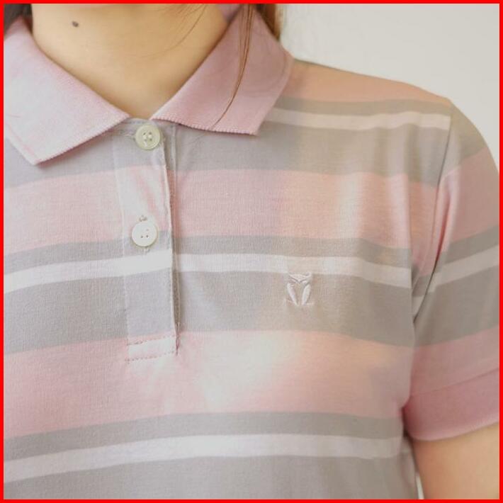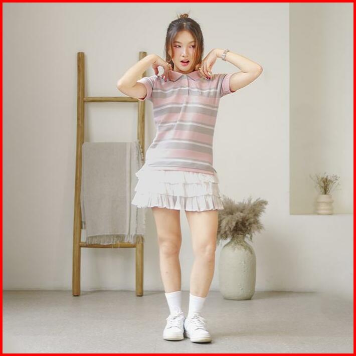 Matsuda Kaos Polo Shirt Wanita Kerah Natsuka Stripe Baju Pendek Atasan Top