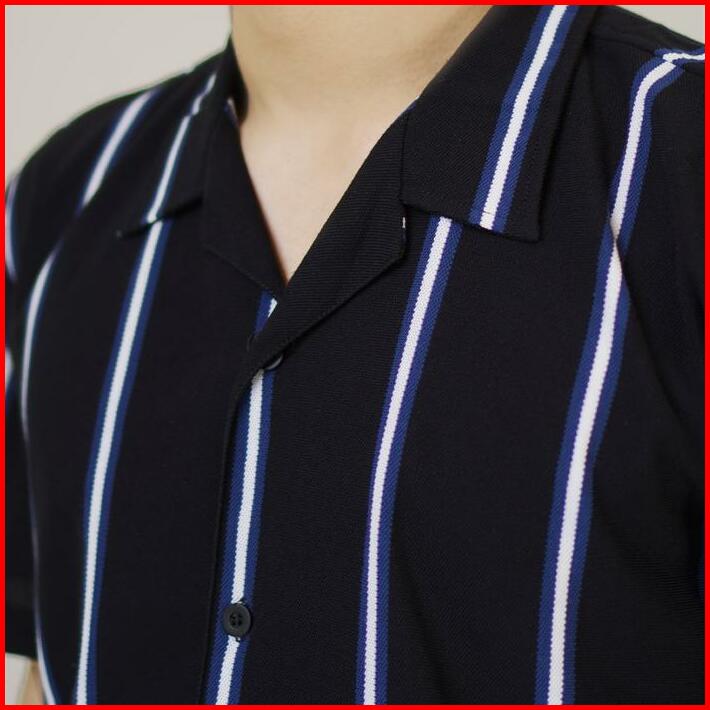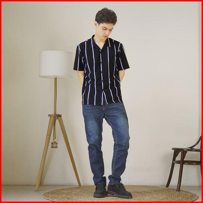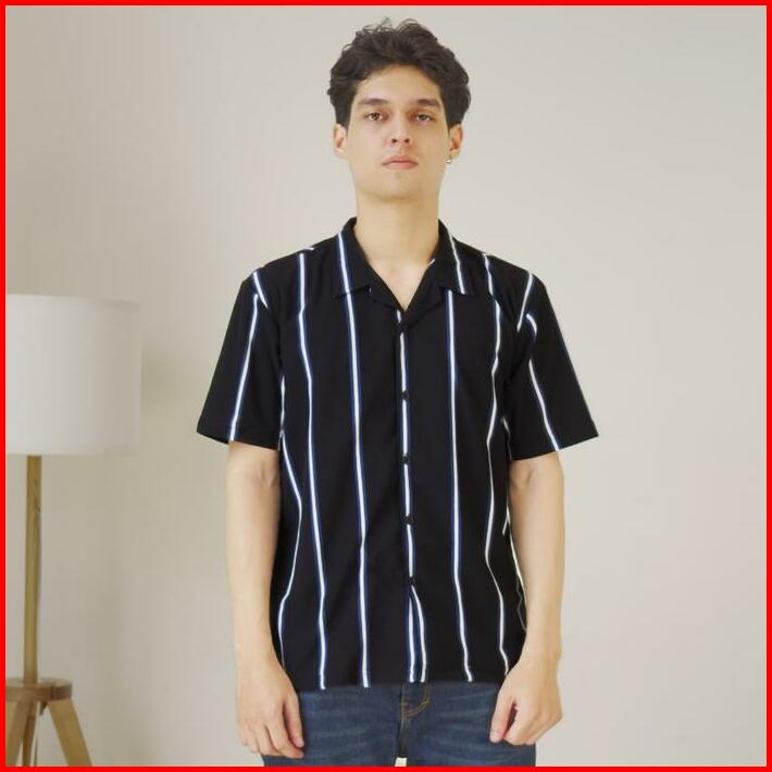 Matsuda Kemeja Pria Stripe Lengan Pendek Usiku Black