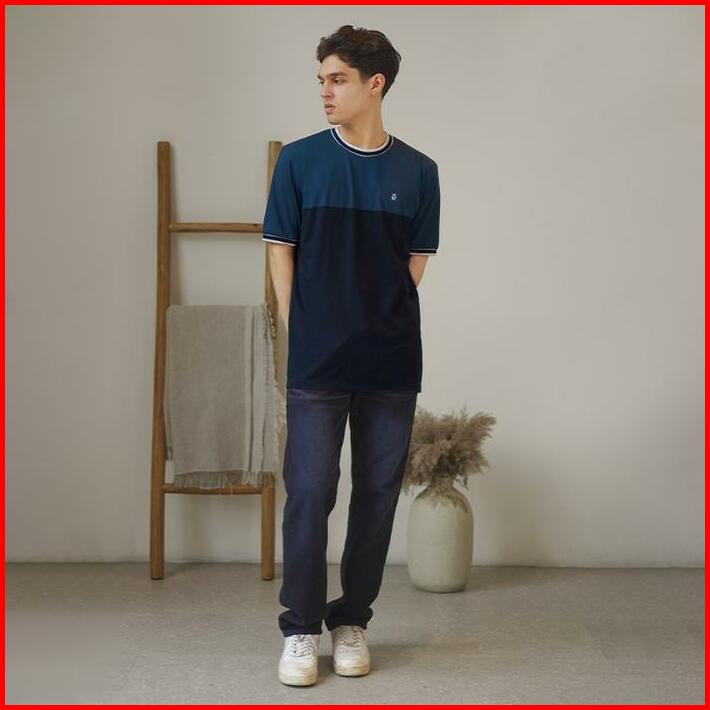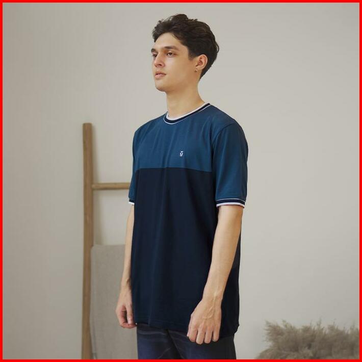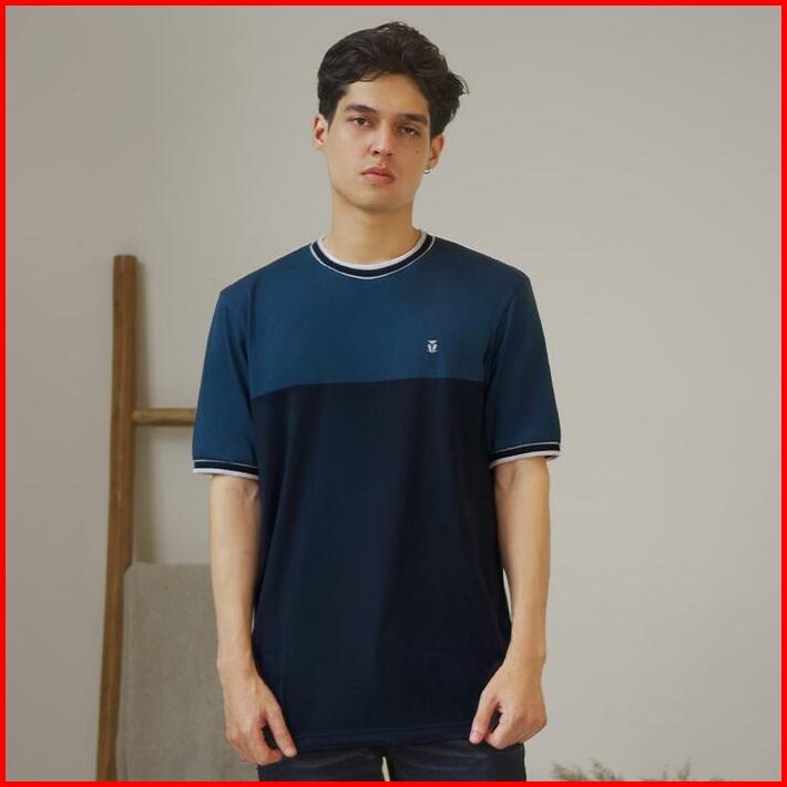 Matsuda Kaos Pria T Shirt Relaxed Fit Tamano Blue Teal White