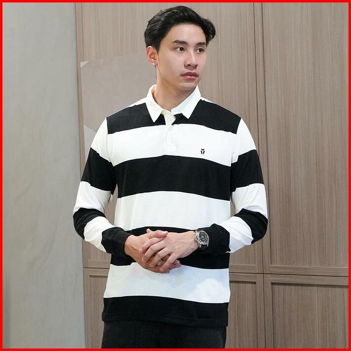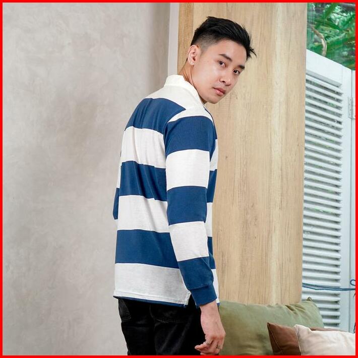 Matsuda Kaos Rugby Polo Shirt Katun Pria Lengan Panjang Nagai Blue Teal White