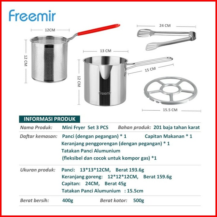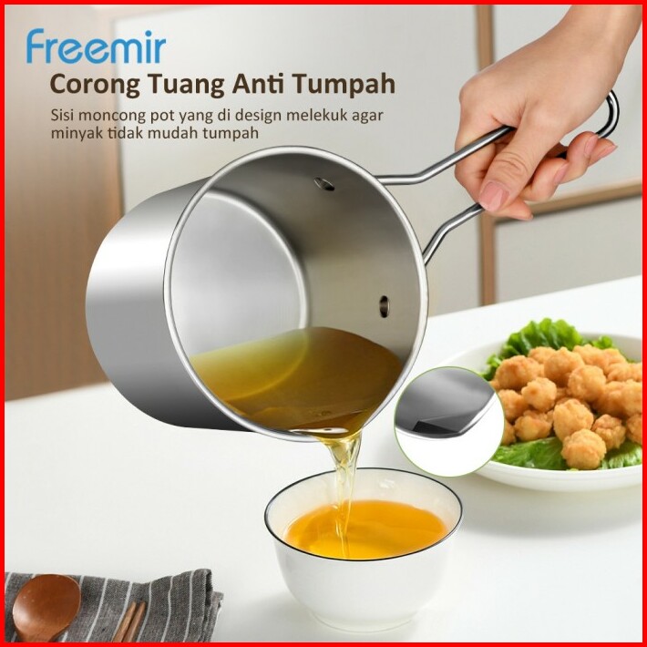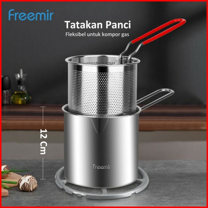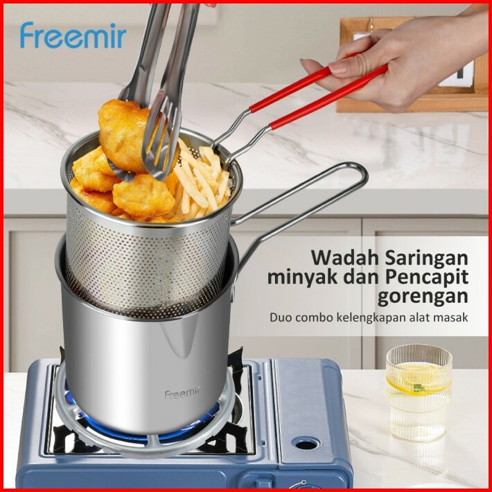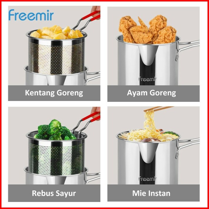 Freemir Panci Deep Fry Pot 12 Cm Saringan Stainless Steel Multifungsi