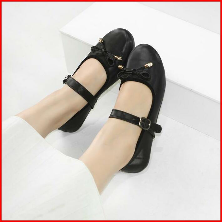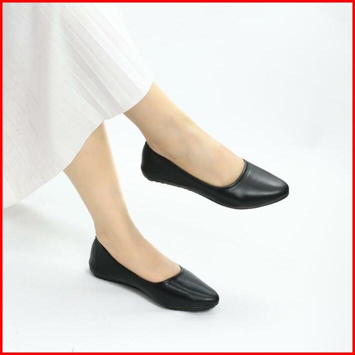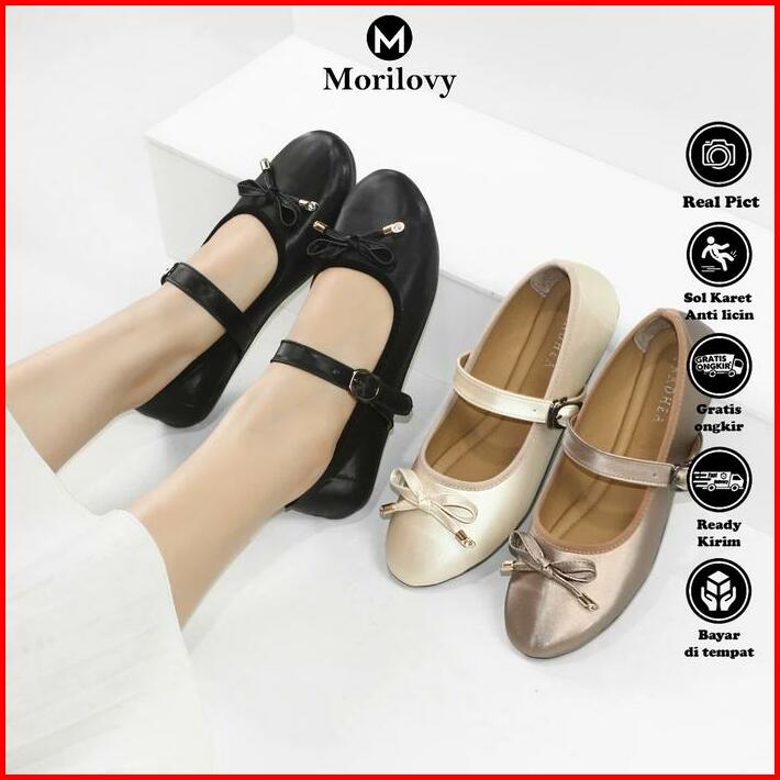 Morilovy Sepatu Balet Flat Shoes Wanita Hitam Kerja Elegan Murah Kekinian Korean Style