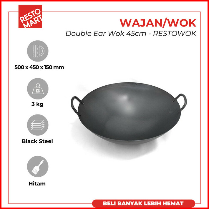 Wajan Baja Pre-seasoned Double Ear Wok 45cm-restowok- 2291083