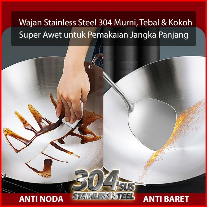 Hugo Wajan Penggorengan Stainless Tebal Anti Lengket Kuali Serbaguna Wokpan Premium Quality