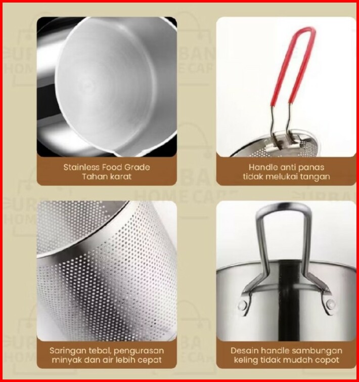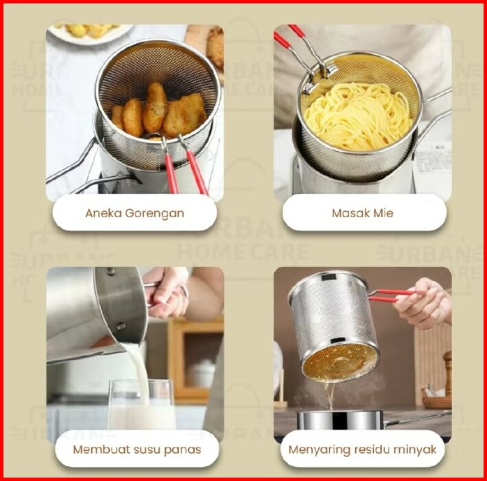 Tj-826 Deep Fryer 4 In 1 Multi Stainless Steel Panci Penggorengan Kentang Saringan Minyak Dan Capitan