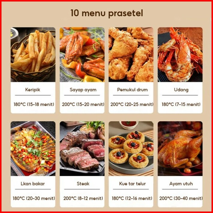 Han River Air Fryer 650w Touch Screen Digital Kapasitas Besar 8l Penggoreng Makanan Serbaguna