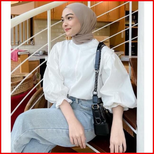 Moni Blouse Katun Wanita Lengan Balon Baju Atasan Top Nyaman Mini Linen