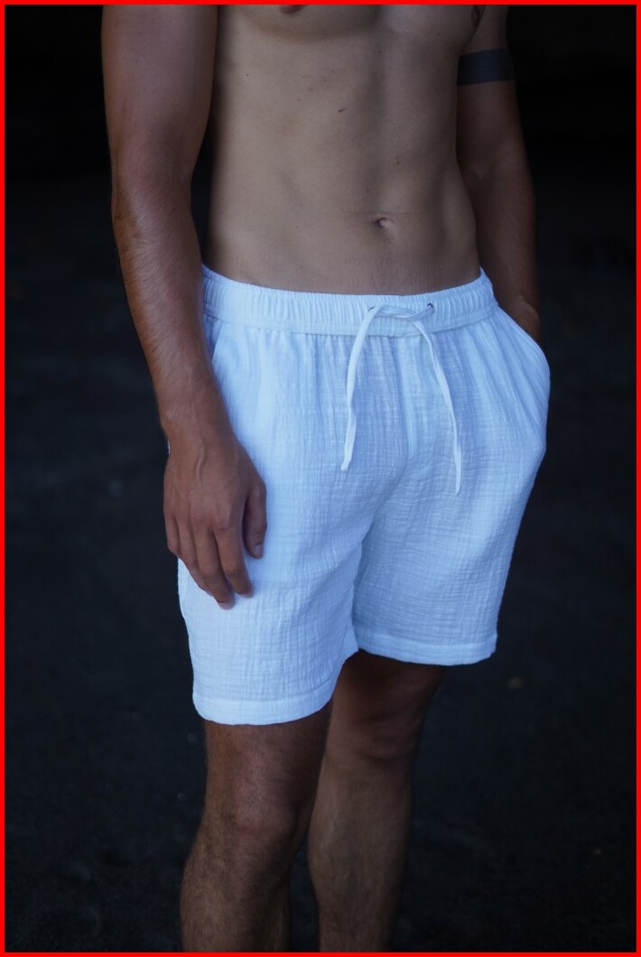 Celana Pendek Pria Putih Katun Double Gauze Celana Pantai