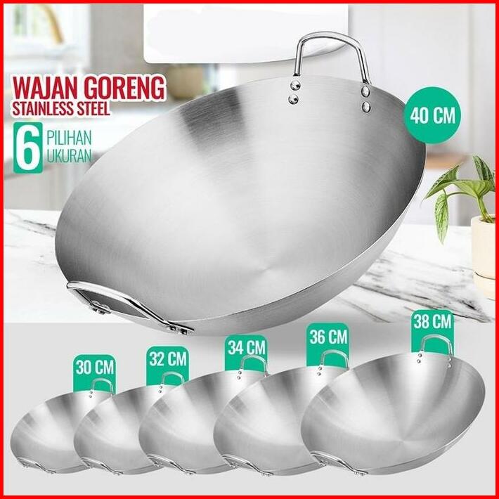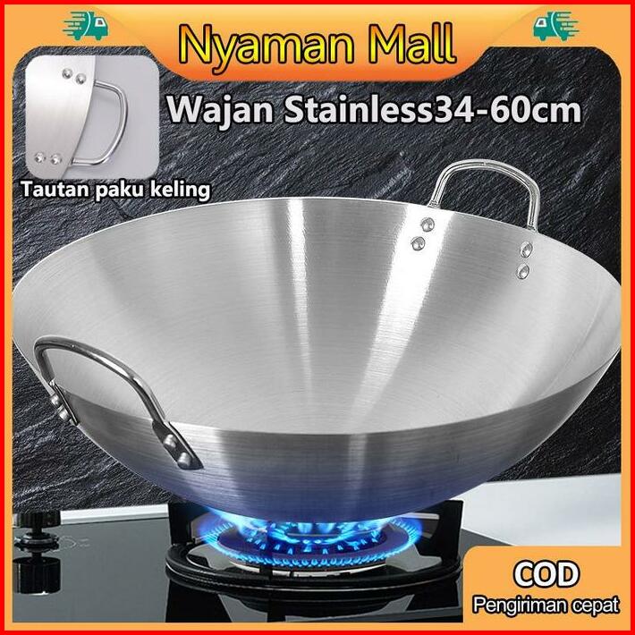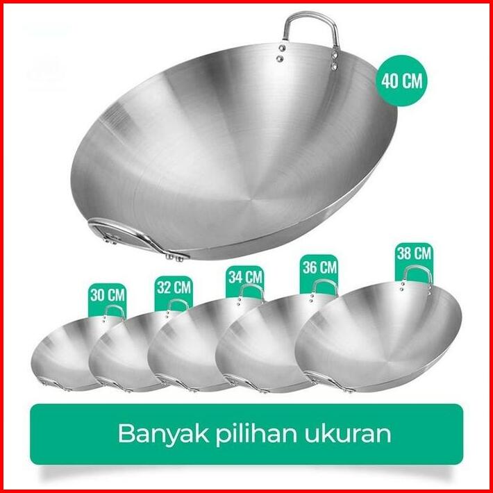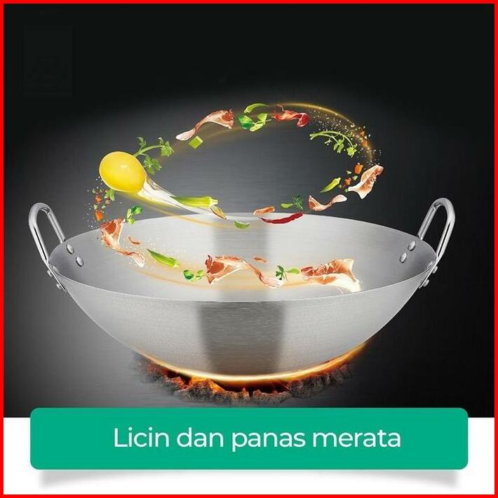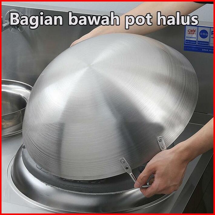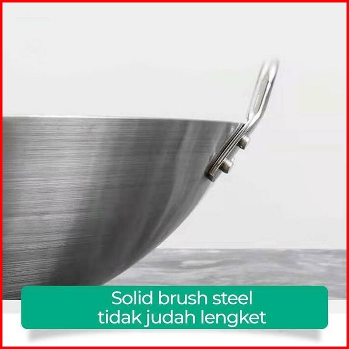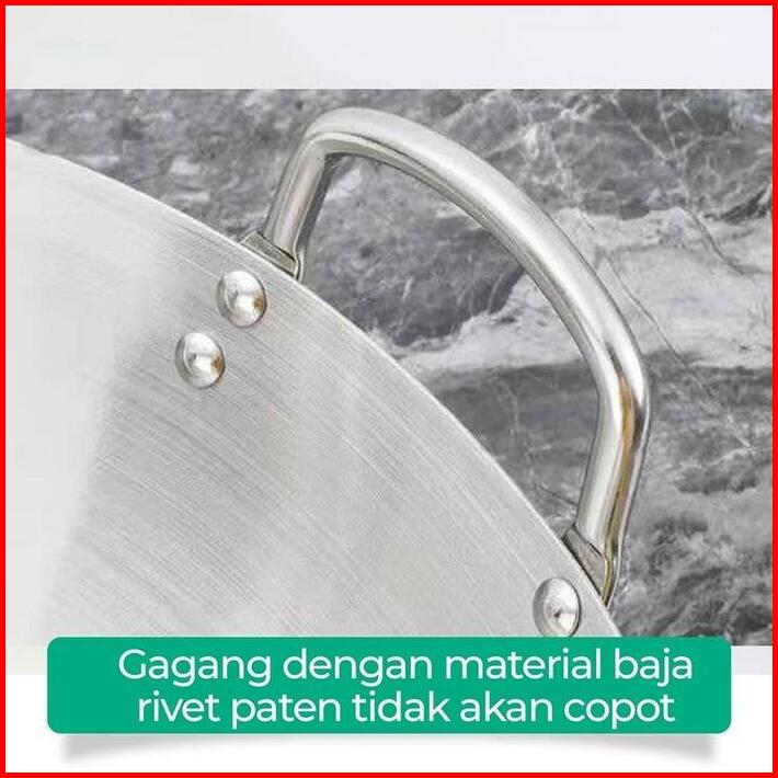 Nyaman Wajan Stainless Steel 55 Besar Katel Anti Lengket Tebal Kuali Premium Dengan Pegangan Kuali