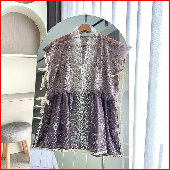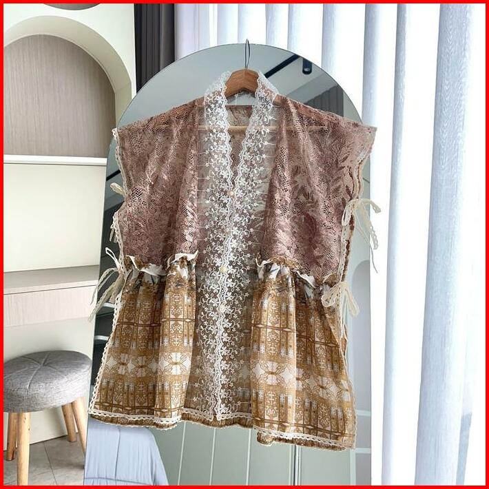 By.hana 235 Raya Brokat Vest Tile Vest Vest Ceruty Motif Wanita Rompi Outer