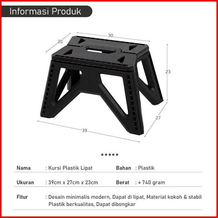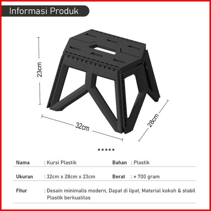 Barito Indo Kursi Jongkok Lipat Plastik Bangku Kokoh Warna Hitam Abu Cokelat Hijau Chair Furniture Outdoor Indoor Minima