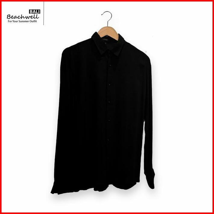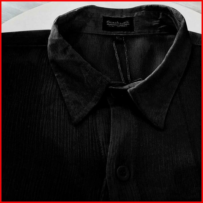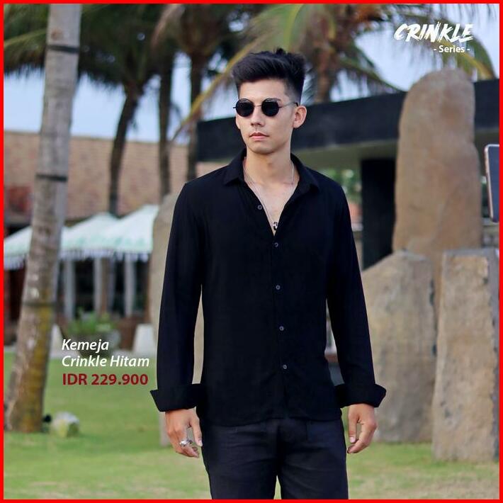 Kemeja Kasual Crinkle Long Sleeve Black Baju Hitam Kemeja Pantai Casual Pria Lengan Panjang Nyaman
