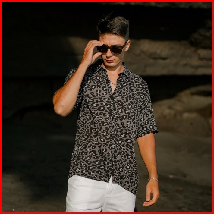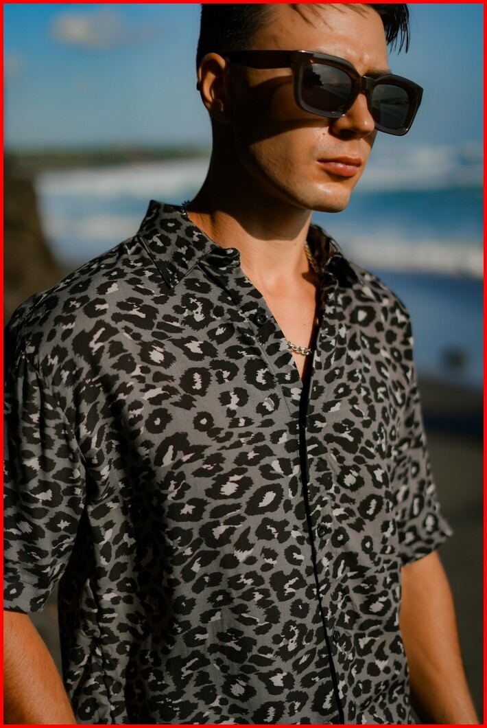 Kemeja Pria Motif Animal Black Leopard Kemeja Pantai