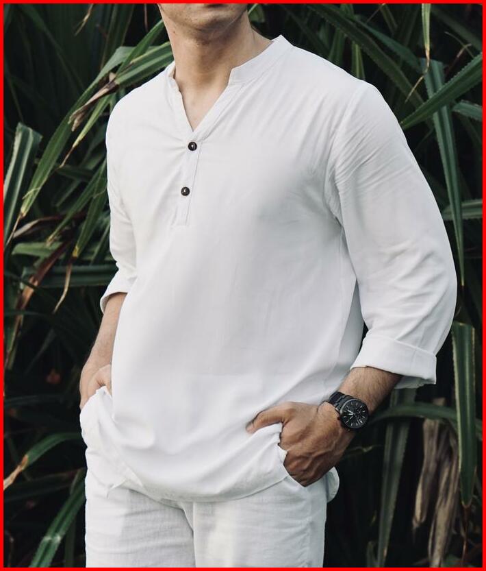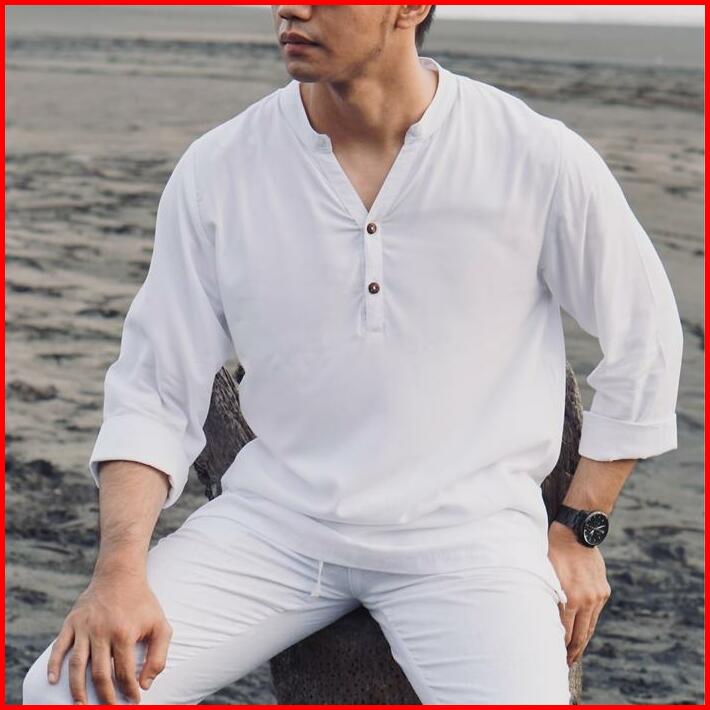 Baju Pria Seminyak Sunset Groove Shirt Baju Lengan Panjang Casual Polos Warna Putih Bahan Rayon Viscose Premium Pantai W