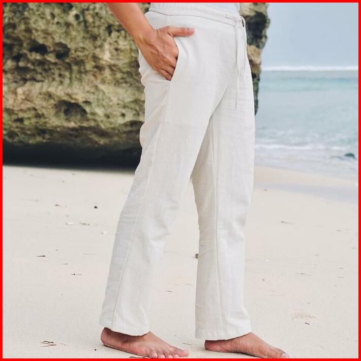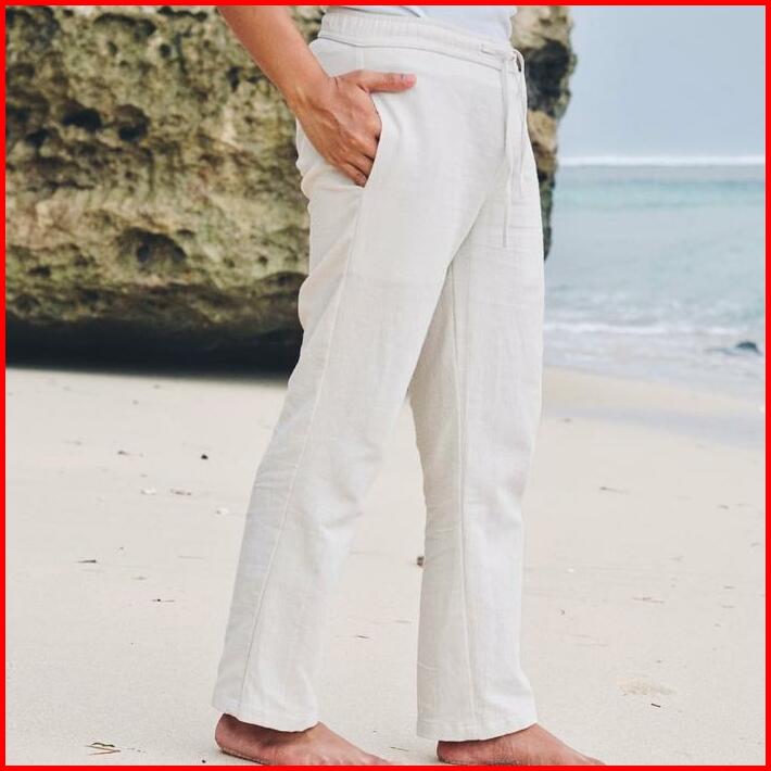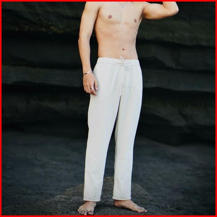 Celana Panjang Pria Linen Katun Premium Polos Cream