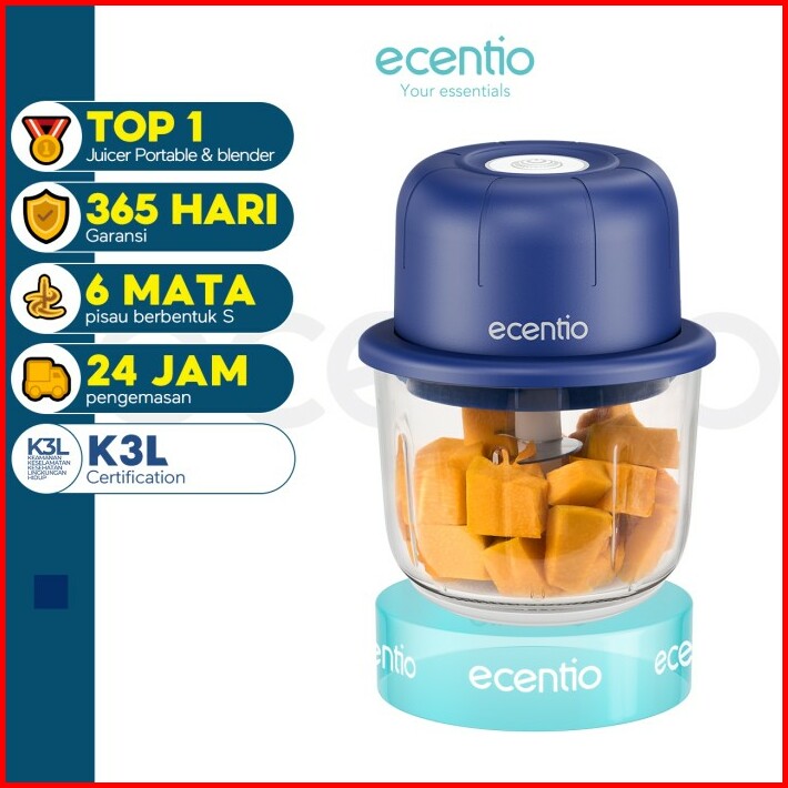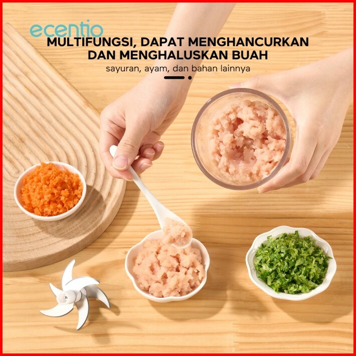 Ecentio Kaca Mini Chopper Blender Portable 6 Pisau 350ml Bumbu Kapsul Alat 304 Stainless Steel Penggiling Daging Mpasi B