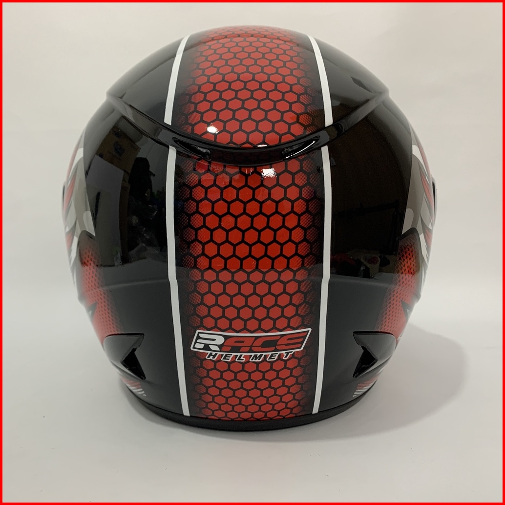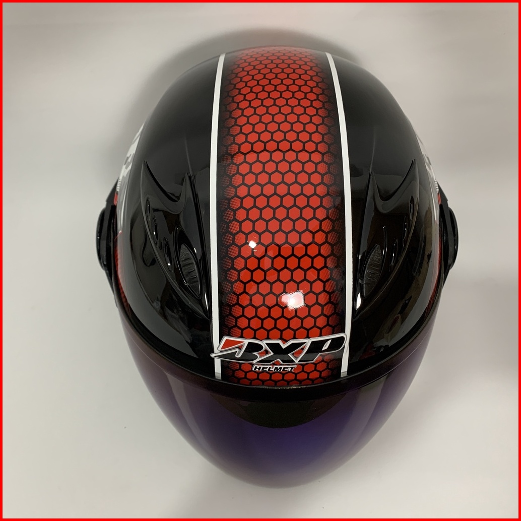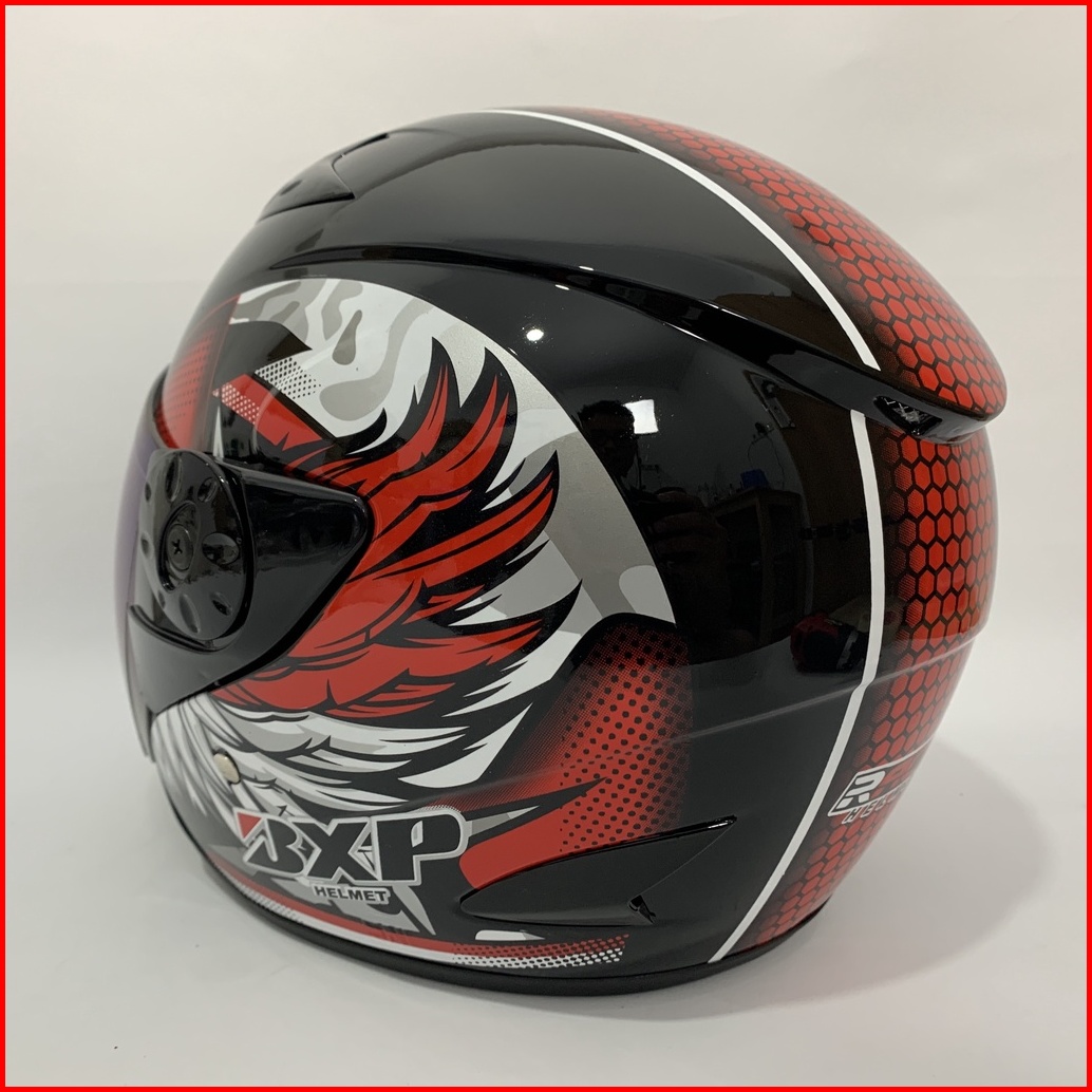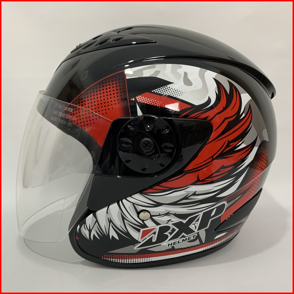 Helm Vision Sayap Merah Putih Hitam Glossy - Kaca Iridium Silver Pelangi Rainbow Helem Helmet Bxp