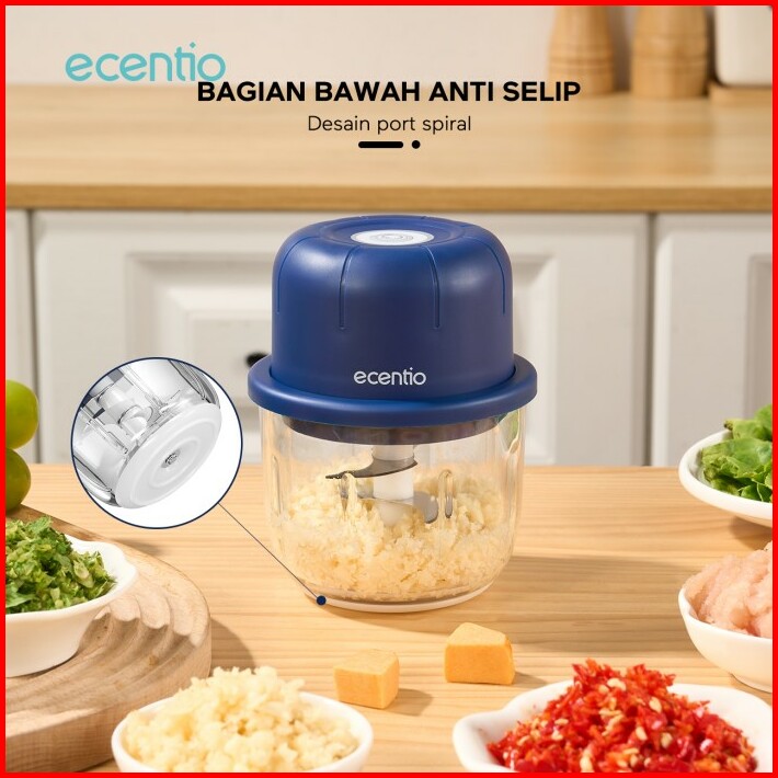 Ecentio Chopper Mini 6 Pisau 350ml Kaca Blender Portable Cope Bumbu