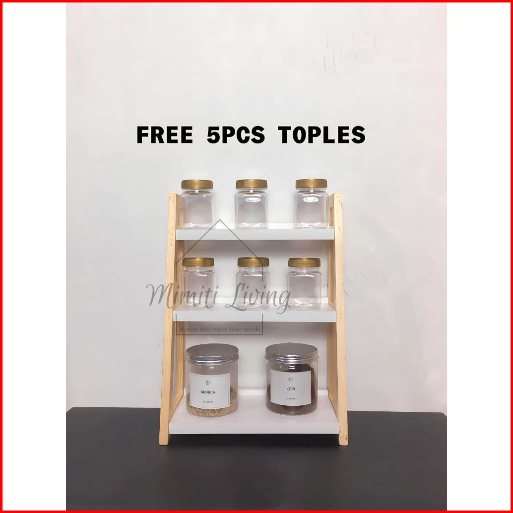 Terlaris.. Rak Bumbu Dapur Serbaguna 3 Susun Medium Rak Variasi Rak Kayu Serbaguna Multifungsi