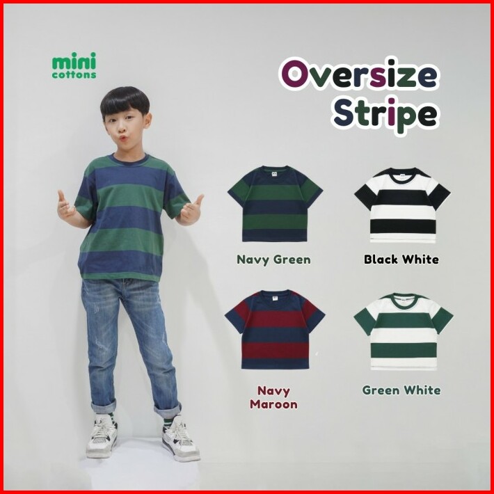 Minicottons Kaos Oversize Stripe Tshirt Kaos Salur Garis Unisex 1-12y