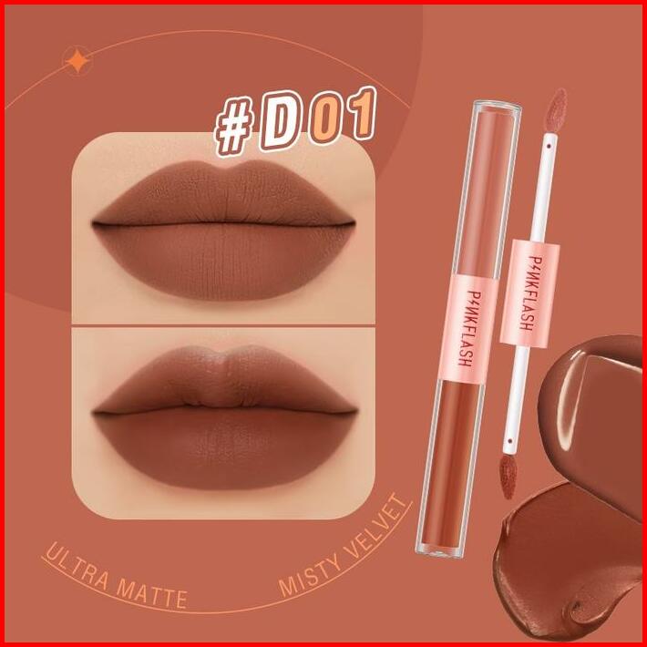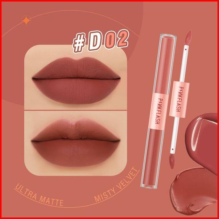Pinkflash 2 In 1 Dual-ended Liquid Lipstik Ombrelips Matte Velvet High Pigment Tahan Lama Ombre