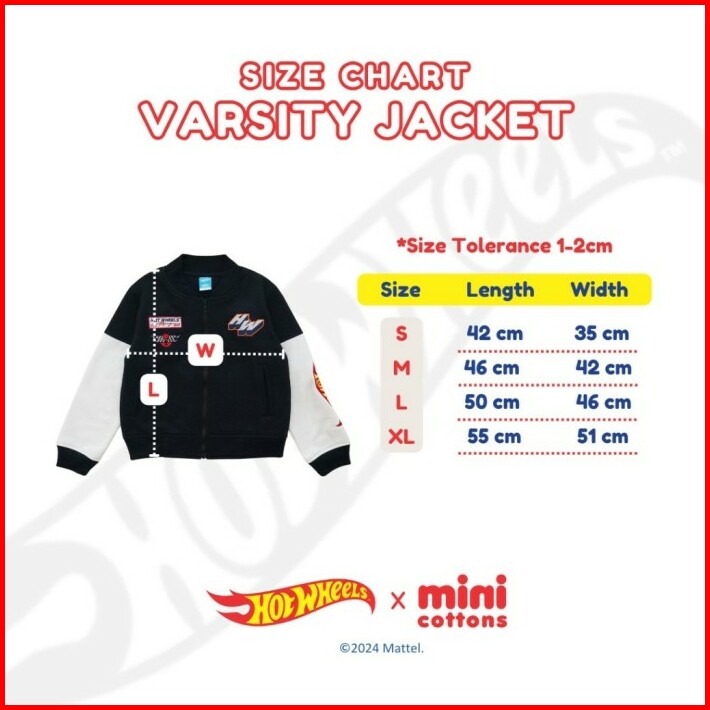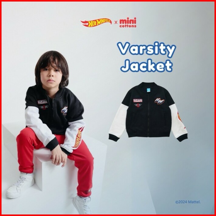 Hot Wheels X Minicottons Varsity Bomber Jaket Jacket Hotwheels Anak Laki Laki 2-12 Tahun