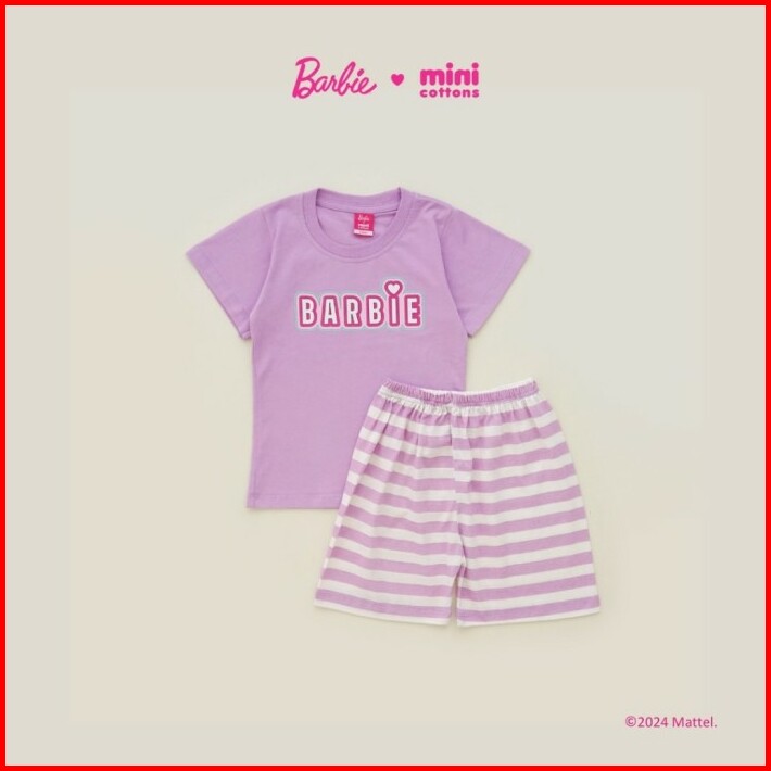 Barbie X Minicottons Kids Set Stripe Setelan Salur Anak Perempuan 2-12 Tahun
