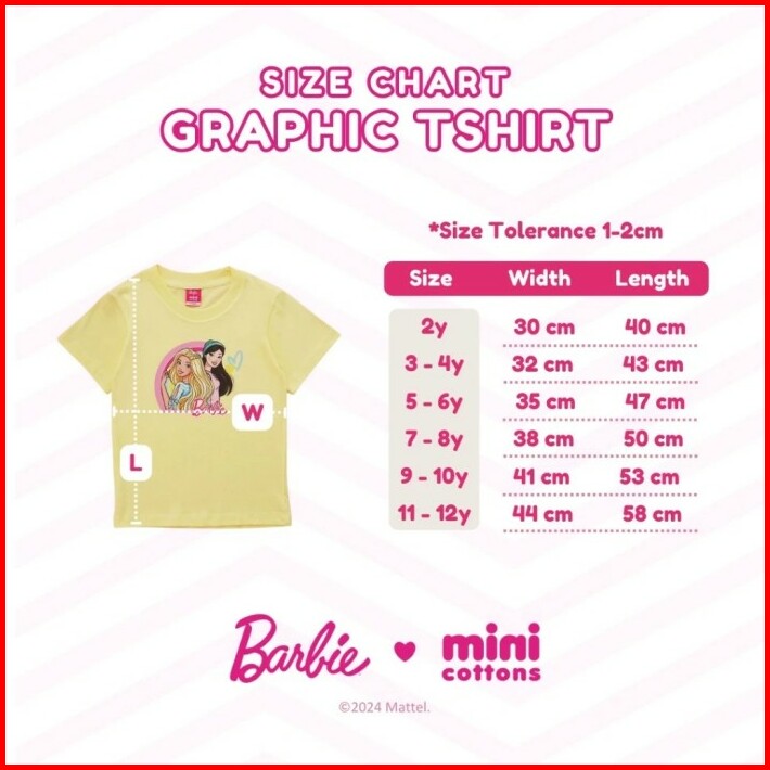 Barbie X Minicottons Graphic Fullprint Tie Dye Tshirt Kaos Grafis Baju Anak Perempuan 2-12 Tahun