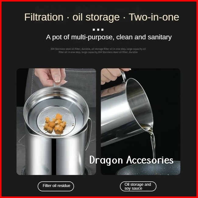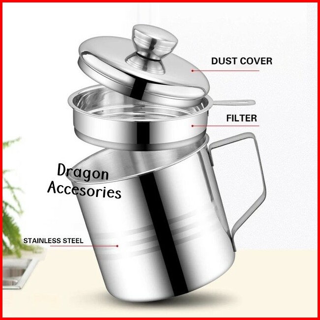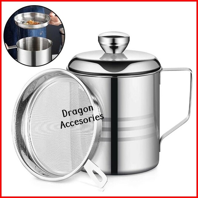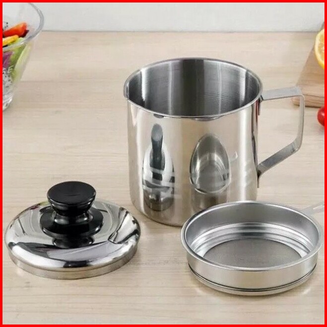 Oil Pot Tempat Gelas Wadah Saringan Minyak Bekas Goreng Stainless Teko