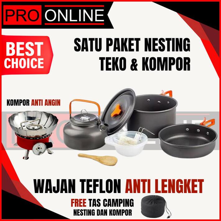 Nesting Teko Kompor Windproof Kemping Gunung Cooking Set Camping