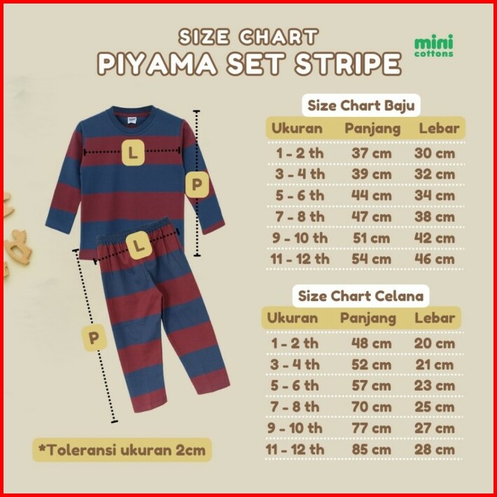 Mini Cottons Piyama Anak Salur Jumbo Setelan Baju Tidur Anak Stripe