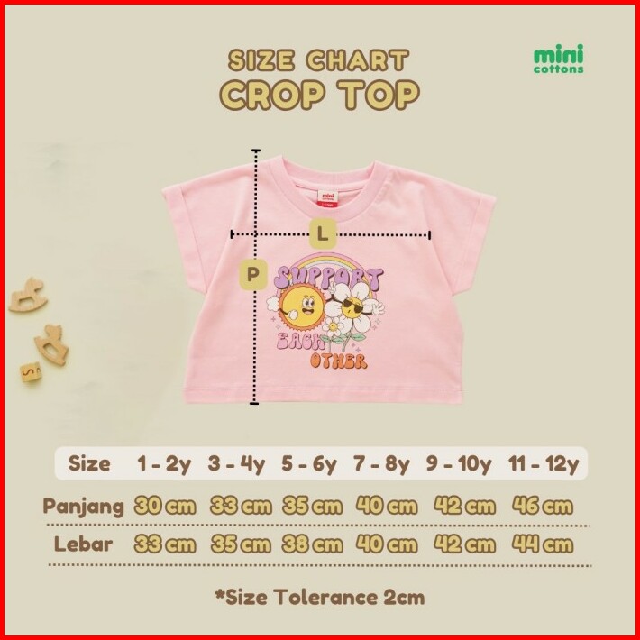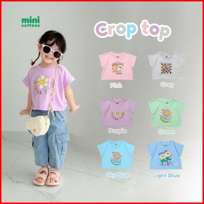 Mini Cottons Kaos Crop Top Anak Perempuan 1-12 Tahun
