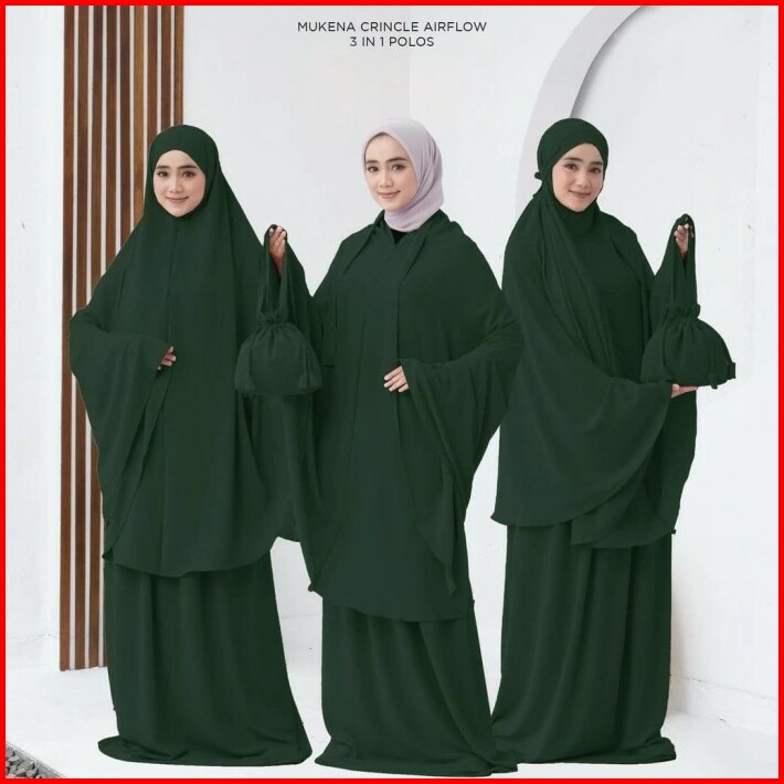 Mukena Dewasa 2in1 Crinkle Airflow Polos Exclusive Jumbo Bahan Adem