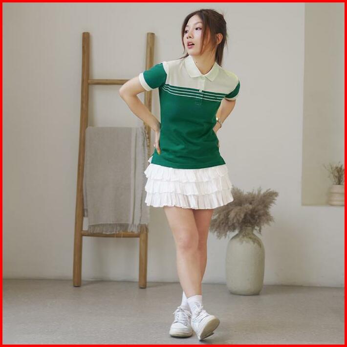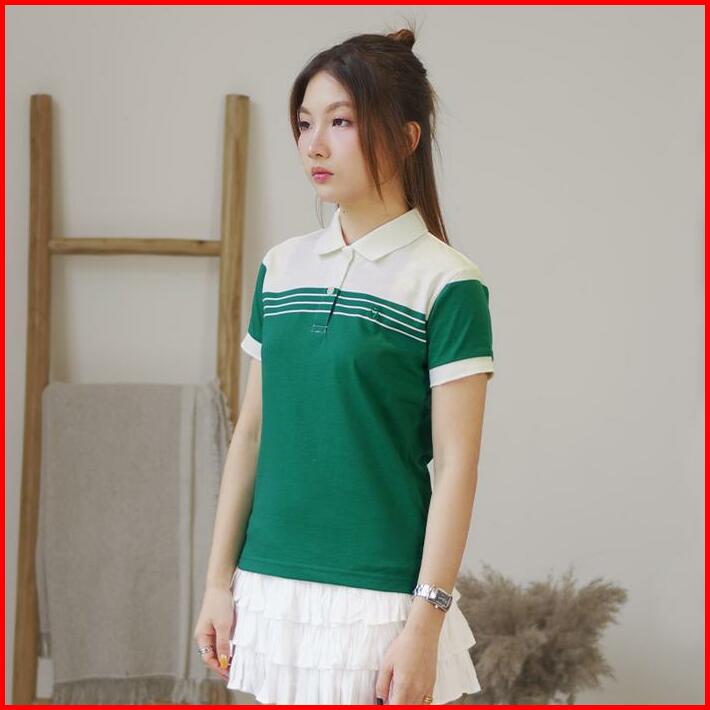 Matsuda Kaos Polo Shirt Wanita Kerah Zehira Stripe Baju Pendek Atasan Top