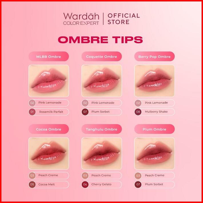 01 ROSEMILK, 02 PINK, 03 PEACH CRèME, 04 CARAMEL, 05 COCOA MELT, 06 CHERRY, 07 PLUM SORBET, 08 MULBERRY, OMBRE 01 + 02, OMBRE 02 + 07, OMBRE 02 + 08, OMBRE 03 + 05, OMBRE 03 + 06, OMBRE 03 + 07