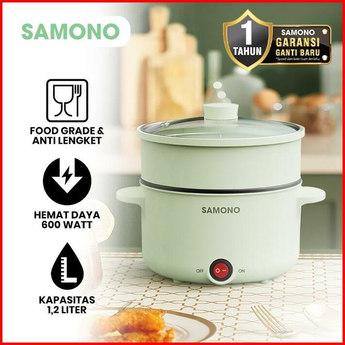 Samono 1.2l Panci Listrik Serbaguna Fry Pan Anti Lengket 600 Watt Material Food Grade Free Kukusan Sw-dg04
