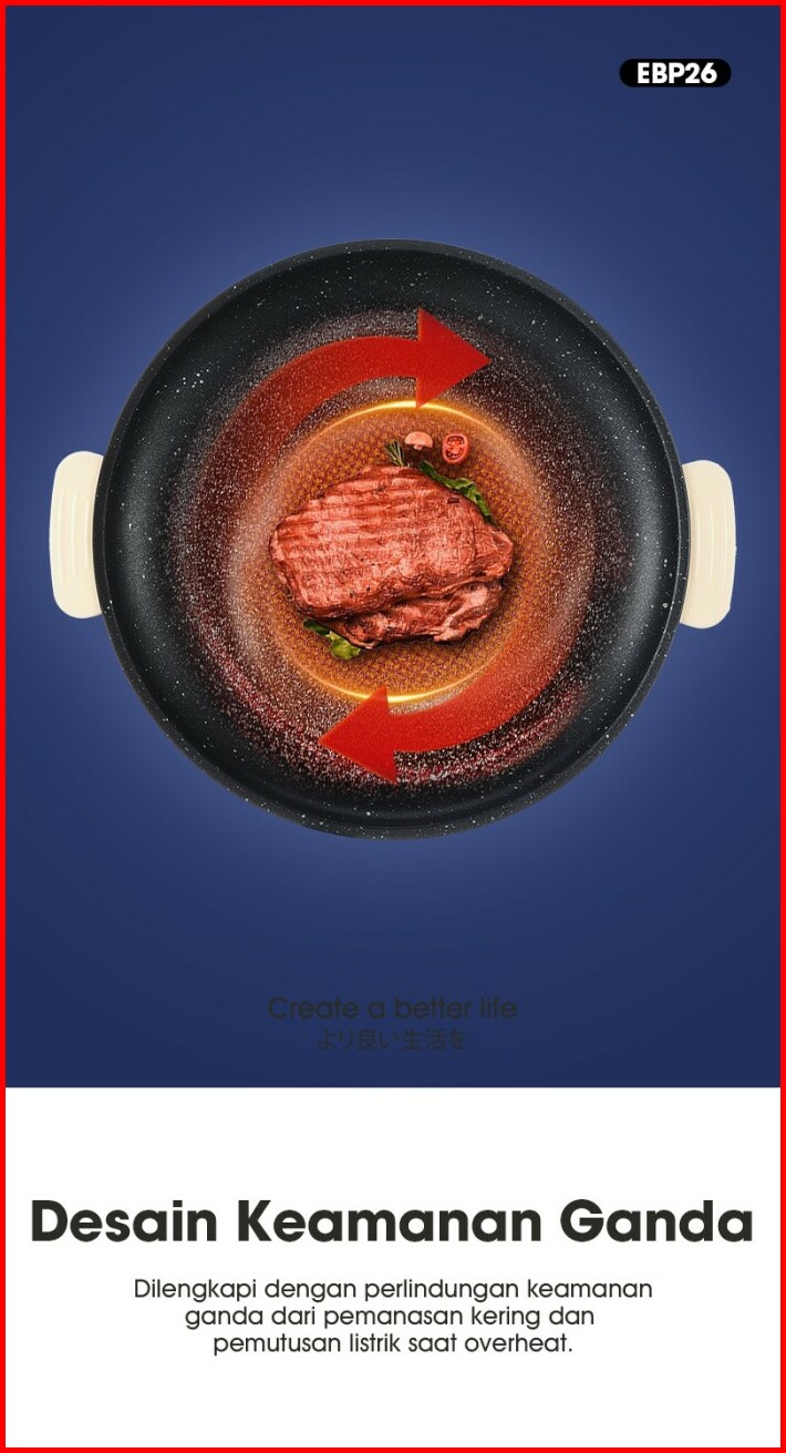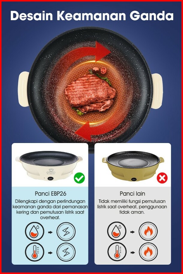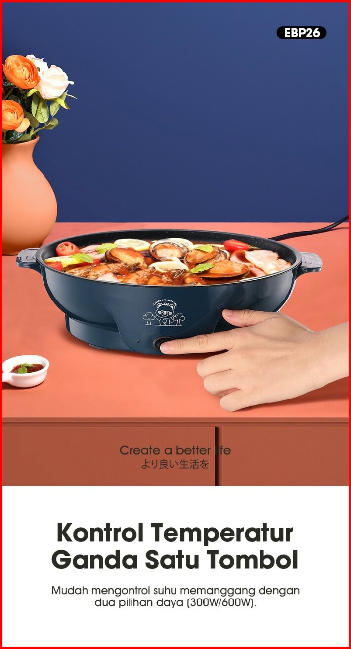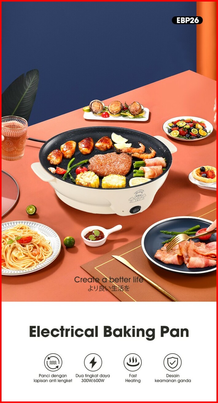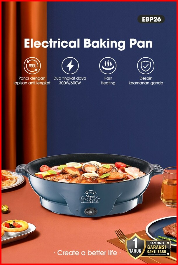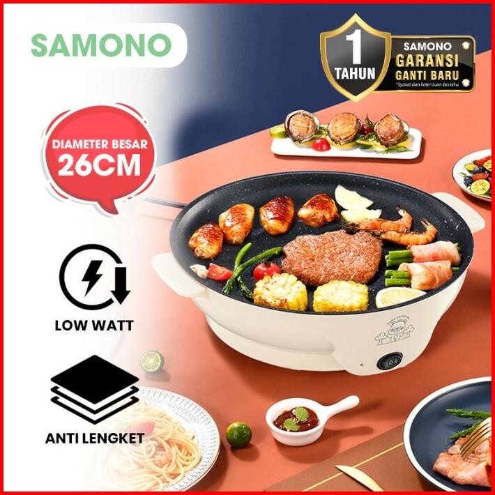 Samono Panci Listrik 26cm Bbq Serbaguna Anti Lengket Low Watt Garansi 1 Tahun Epb26